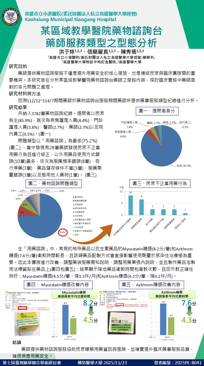 某區域教學醫院藥物諮詢台藥師服務類型之型態分析