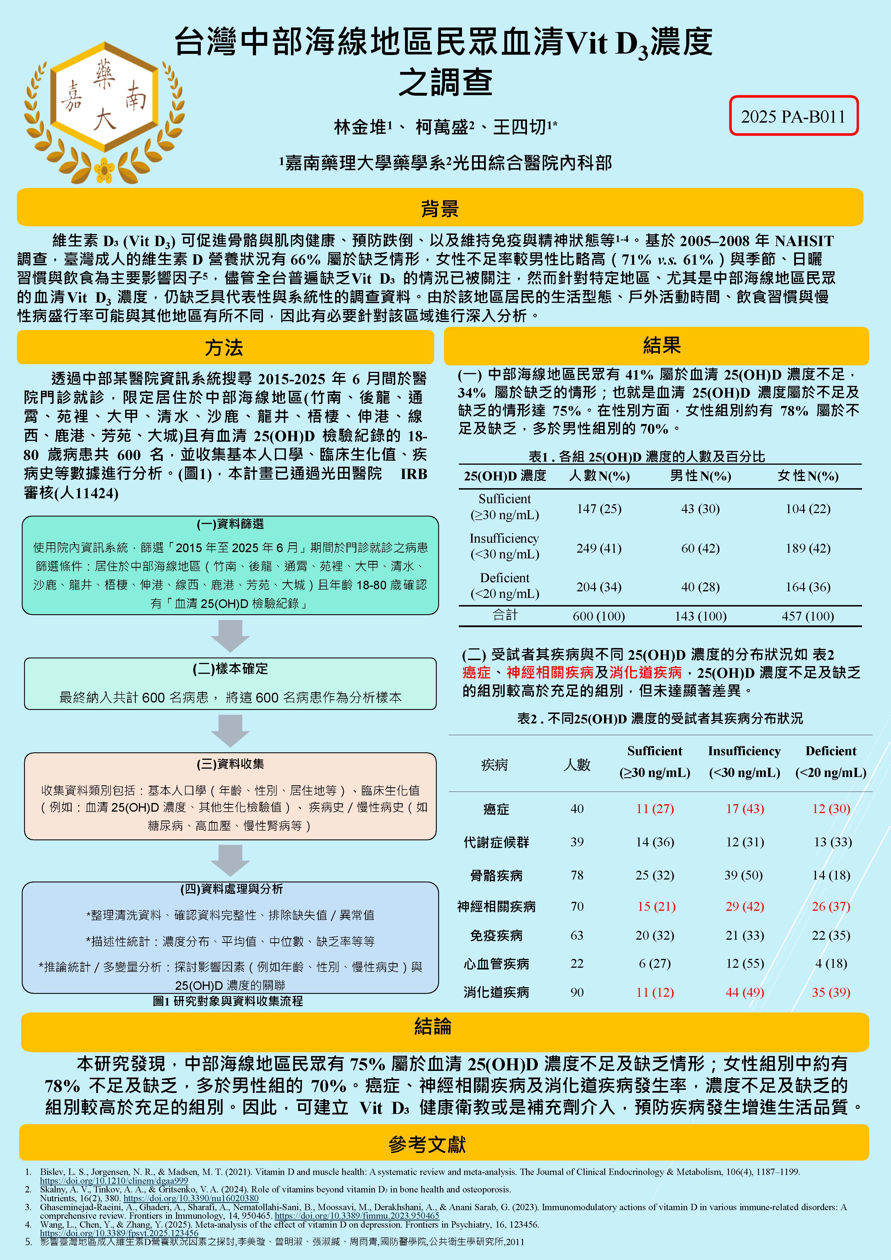 Vitamin D₃ Status in Adults Residing in Central Coastal Taiwan: A Regional Analysis of Demographic and Clinical Correlates